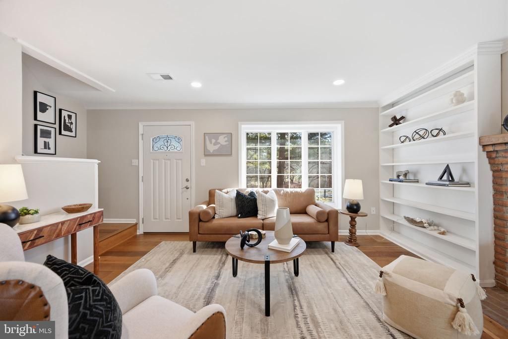 Perched on just over half an acre of fenced land framed by mature trees, the charming, "Red House on the Hill" welcomes you home via flagstone steps and a gracious winding drive. Fully renovated in 2022, including a new roof, the approximately 1,772-square-foot residence blends timeless character with thoughtful modern updates and enjoys a setting just minutes from historic New Market. Morning light fills the east/southeast-facing main level, where 7-inch hardwood floors, exposed beamed ceilings, expansive casement windows, custom built-ins, and a cozy fireplace create inviting spaces to gather. The renovated kitchen is both functional and beautifully finished. An oversized farmhouse sink overlooks the screened-in porch and backyard, while a generous island provides ample prep space and storage. Crown molding, pendant and recessed lighting, and GE appliances — including a five-burner electric stove/oven and microwave — complete the space. The main-level primary suite offers a private retreat with a quartz-topped dual vanity and a glass-enclosed shower accented with herringbone tile. A second renovated full bath on the main level is windowed and includes a tub/shower combination, offering both natural light and flexibility for guests or everyday use. Upstairs, two additional bedrooms with new carpet share a renovated full bath featuring large-format tile flooring and a glass-enclosed shower with built-in niches. The finished lower level adds flexibility with newer laminate flooring, recessed lighting, a wood-burning stove, and a spacious second living area. A full-size washer and dryer, utility sink, extensive storage, upgraded electrical service, and an additional refrigerator/freezer that conveys enhance everyday functionality. Outdoor living is equally appealing, with a screened-in porch overlooking the backyard, while a large shed with built-ins, a workbench, and electricity offers excellent space for hobbies or storage. Additional systems provide year-round comfort and efficiency, including a whole-home humidifier and a water softener and filtration system installed in 2023. Just minutes from the charm of historic Main Street New Market — home to Prospect Pantry, 5 West Café, and Vintage Restaurant — as well as nearby everyday conveniences, the home offers the best of small-town character with the ease of a residential neighborhood setting. Outdoor enthusiasts will appreciate proximity to Whiskey Creek, PB Dye, and Holly Hills Country Club, along with parks and recreation options such as Adventure Park USA and area walking trails. Easy access to Route 40, I-70, and I-270 provides convenient commuting to Frederick, Montgomery County, Baltimore, and beyond. The property is also surrounded by highly rated Frederick County schools. Charming, thoughtfully updated, and beautifully sited, 114 Royal Oak Drive offers warmth, character, and everyday convenience in one of Frederick County’s most desirable communities.