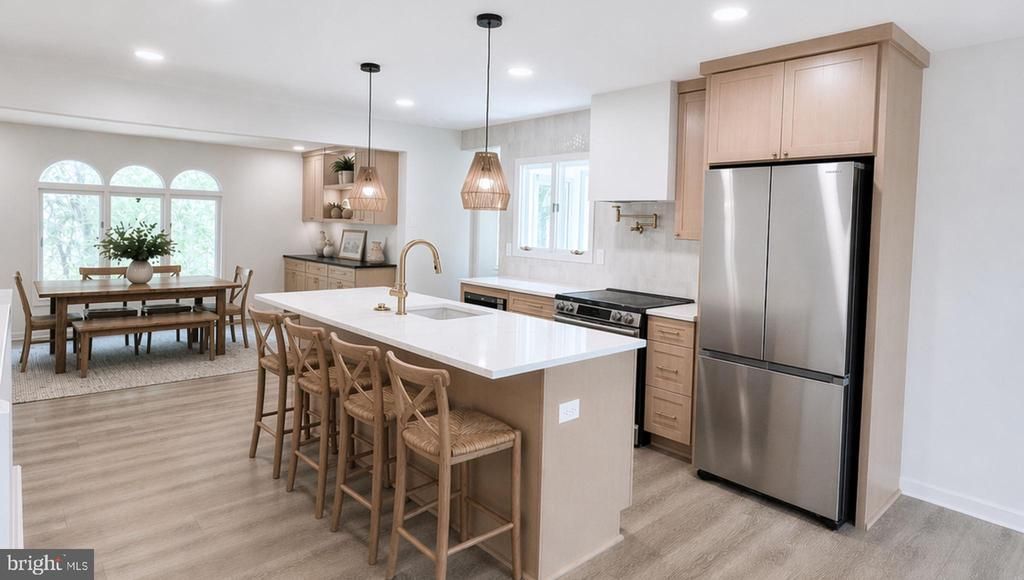 Welcome to 1196 Tanager Drive in Millersville—where thoughtful design, modern updates, and peaceful surroundings come together to create a truly special home. This beautifully renovated rancher offers the perfect blend of style, comfort, and flexibility, making it ideal for today’s lifestyle. Step inside to discover a bright, open-concept main level with three bedrooms and two fully renovated bathrooms, including a spacious primary suite complete with a custom walk-in closet and private bath. The heart of the home is the stunning, fully redesigned kitchen, featuring a large island, quartz countertops, soft-close cabinetry with dovetail drawers, a farmhouse fireclay sink, modern range hood, pot filler, stylish tile backsplash, and brand-new stainless steel appliances. Just off the kitchen, the dining area includes a sophisticated dry bar with soapstone counters—perfect for entertaining—while the walk-in pantry/mudroom provide exceptional storage and everyday convenience with durable tile flooring. The finished lower level dramatically expands your living space, offering a large recreation room perfect for movie nights, game days, or gatherings. With the potential for a fourth bedroom, a third beautifully renovated bathroom with a frameless glass shower, a large utility/workshop area, and an additional flexible room for an office, gym, hobby space, or storage, the basement provides endless possibilities. Throughout the home you’ll find thoughtful upgrades including new luxury vinyl plank flooring on the main level, brand-new carpet in the basement, and three fully renovated bathrooms with modern tile, vanities, lighting, and fixtures. The electrical system has been updated along with new recessed lighting, outlets, switches, and fixtures throughout the home, plus new exterior lighting, new interior doors, new railings and balusters leading to the basement which also includes a laundry area with washer, dryer, and new utility sink adding even more convenience. The list goes on! Outside, enjoy updated landscaping and easy backyard access from both levels, multiple patio areas perfect for relaxing or entertaining, surrounded by mature trees and scenic farmland, the setting feels quiet, private, and wonderfully rural—yet you’re just minutes from everyday conveniences like route 3 and the Waugh Chapel Shopping center. Additional major improvements include a roof less than five years old with a gutter guard system, updated the rear retaining wall, freshly painted interior and exterior, an updated septic system with new dry well and exterior pipe replacement, and a transferable leased water treatment system. The well was replaced in 1997, adding to the home's solid infrastructure. Ideally located near NSA Fort Meade and just 15–20 minutes from Annapolis, with convenient access to Routes 97 and 32, this home is perfectly positioned between Baltimore and Washington, D.C. You can also enjoy The South Shore walking/biking trail just around the corner. If you’ve been looking for a move-in-ready home with high-end finishes, flexible living space, and a peaceful setting—this is one you won’t want to miss. Open Houses on Saturday 5/2 and Sunday 5/3!!