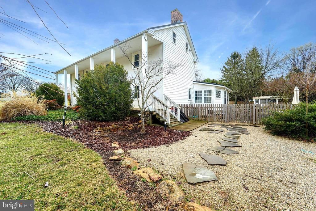 Step into timeless charm and rich history in this extraordinary Farmhouse–style home, originally built in the 1700s as a log cabin tavern. By 1850, it had become a dry goods store, and over the centuries it has been thoughtfully restored and updated while preserving its remarkable character. From the moment you arrive, stunning molding, historic touches, and modern luxury plank floors flow throughout the main and upper levels. The inviting foyer features a Victorian-style woodstove and trim that sets the tone for the home’s historic appeal. Just off the entry, a large family room offers its own fireplace with crown and chair rail molding, while the expansive living room is perfect for both formal entertaining and everyday living. The flooring has been completely rebuilt to ensure structural integrity. A separate formal dining room with elegant touches opens seamlessly into a breathtaking, light-filled sunroom with skylights and panoramic views of the surrounding homestead landscape. French doors lead to a covered rear porch with a ceiling fan, making it an ideal spot for outdoor dining, morning coffee, or evening gatherings. The bright kitchen features recessed lighting, a large farmhouse sink, stylish painted cabinetry, a new backsplash, a cozy breakfast nook, a garden box window, and both a pantry closet and walk-in pantry. A convenient half bath completes the main level. Upstairs, the open and versatile landing area is perfect for a library or sitting area. The spacious primary suite offers a private full bath with a unique vaulted ceiling, a new double vanity, and updated LVT flooring. Three additional generously sized bedrooms complete the level, including one with its own fireplace, along with a full hall bath with a custom built-in vanity and a second-floor laundry room for everyday convenience. The land is just as special as the home itself and feels like a private retreat. Custom patios create distinct spaces for entertaining, dining, and relaxing. Large koi ponds with a waterfall feature provide a peaceful focal point, while mature trees, lush gardens, and professional landscaping surround you in natural beauty. Raised garden beds for herbs and vegetables allow you to tend your gardens while enjoying sweeping views of the property. The fully fenced yard, newly fenced pastures, and a new horse run-in shed with water access provide an immediate home for precious, or future, animals. The property features seven total structures: the main house, a cottage, charming potting shed, chicken coop, feed shed/rabbit shed, run-in horse shed, and a 350 SF equipment storage shed. The on-site cottage is separately metered with the power company and has water potential, offering excellent flexibility for a home business or guest space. The cottage also has a pigeon house built onto it which could be used for other animals. Behind the outbuildings, a mature orchard produces apples, nectarines, plums, peaches, pears, and cherries. Recent infrastructure upgrades include new well lines, a new 500-gallon poly tank, and a new hot water heater, adding peace of mind and modern reliability. With walls an impressive 16 inches thick, the home stays naturally cool in the summer and warm in the winter, a testament to its enduring craftsmanship. This property comes with a second 0.67-acre parcel. This exceptional home offers space, history, character, and tranquility, perfect for those seeking classic farmhouse charm with incredible indoor and outdoor living.