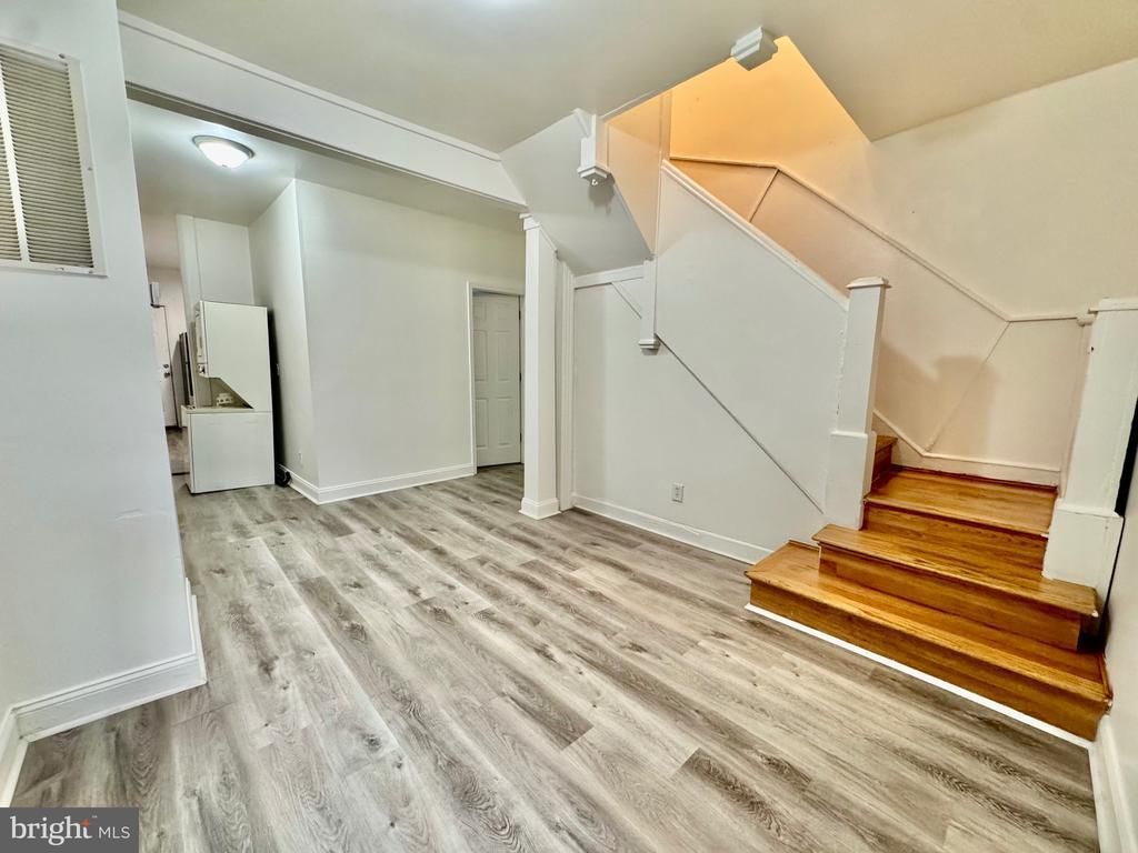 Welcome to this spacious and upgraded row home located in the Mondawmin neighborhood. As you enter the main level, you’ll find a convenient bedroom and full bathroom, perfect for guests or flexible living arrangement, along with a well-appointed kitchen area and in-unit washer and dryer. The home features LVP flooring throughout, has been freshly painted, and is move-in ready. Upstairs, the second level offers three comfortable bedrooms and an additional full bathroom, providing ample space for family or guests. The unfinished basement offers excellent storage potential or an opportunity to customize to your needs. This property is a great opportunity whether you’re looking for a primary residence or an investment