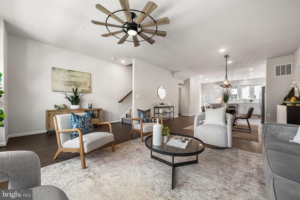 Welcome to this beautiful, update-filled 3-bed, 2.5 bath home (Frankton model) with 2,000 sq ft of living space and a two-car garage in the sought-after Watershed community. With premier upgrade packages and additions, this home has it all. On the entry floor, find a spacious flex room/office/bonus space, which could also easily be turned into a 4th bedroom for guests if desired, and plentiful storage space. The main level features an expansive floorpan with extra bump out, boasting an open living and dining spaces, a full corner kitchen with an eat-in island, half bath for guests, and beautiful private balcony. The full living room is spacious enough for large, comfy couches or multiple sitting areas perfect for guests. The expansive dining room also easily fits a large dining table and extra storage pieces. The kitchen is full of updates - quartz countertops throughout, an additional eat-in island with extra storage and outlets, Whirlpool appliances including an oversized double-door refrigerator and 5-burner gas range, plentiful cabinet space with soft close drawers and under cabinet lighting, an oversized pantry, and more, with direct access to the private balcony. Upstairs, find three bedrooms + two full baths, a full-sized washer and dryer with storage space, and a large linen closet. The primary suite is spacious with TWO walk-in closets and a luxury ensuite bath - with a full-wall, double sink vanity with quartz countertops and bonus window, full-wall mirror, large high-end ceramic tile flooring, spacious walk-in shower with ceramic tilework, and plentiful cabinet and counter space. The two additional bedrooms have ample room for full beds or home offices and extensive closet space in each. Easy access to the updated hall bath with a soaking tub and shower, ceramic tile floors and subway backsplash, and upgraded vanity. Other updates include LVP floors throughout entry and main levels, oak hardwood flooring on all stairs, fresh paint throughout, custom high-end blinds on all windows, updated pendant lighting and high-end ceiling fans, and an array of other premier updates. The Watershed community offers a variety of amenities including a community center, two outdoor pools, tennis courts, play areas with play equipment, dog parks, walking paths, and more. The Watershed is centrally located near multiple shopping centers and Laurel attractions and thoroughfares for easy commutes to Washington DC, Baltimore, Annapolis, BWI Airport, Fort Meade, and more. Feel at home in your community and right around the corner from anything you need!