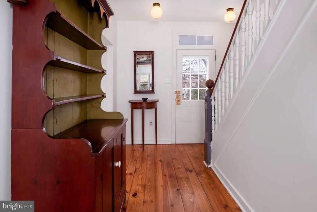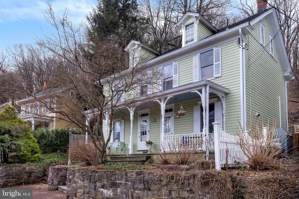 In historic Lumberville, one of Bucks County’s most enchanting river villages, this late-19th-century duplex offers an extraordinary opportunity to embrace the timeless beauty of life along the Delaware River. A gracious rocking-chair front porch welcomes you with tranquil river views, setting the tone for a home that feels like a year-round vacation home. Inside, an airy open floor plan is filled with natural light and anchored by original native pine floors that speak to the home’s rich heritage. The thoughtfully updated kitchen blends classic character with modern convenience, featuring stainless appliances, including a Liebherr refrigerator. The living room strikes a perfect harmony between past and present, with a striking wall of windows framing the surrounding landscape and inviting the outdoors in. From here, step onto the private patio, and experience a little piece of solitude. Upstairs, the serene primary bedroom is complemented by a beautifully up-to-date full bath with marble topped vanity, tiled flooring and linen storage. A sitting room or home office completes the level, perfectly positioned to capture sweeping river views. The top floor hosts a charming second bedroom featuring custom built-ins, abundant storage, and windows that overlook both the backyard and the shimmering Delaware River beyond. Life in Lumberville feels worlds away yet remains remarkably accessible. Stroll to the canal towpath for exercise, cross the Delaware on the historic Lumberville–Raven Rock pedestrian bridge to Bull’s Island state park, or enjoy dinner and drinks just steps away at the renowned Black Bass Hotel and Restaurant. Life slows down a bit here.