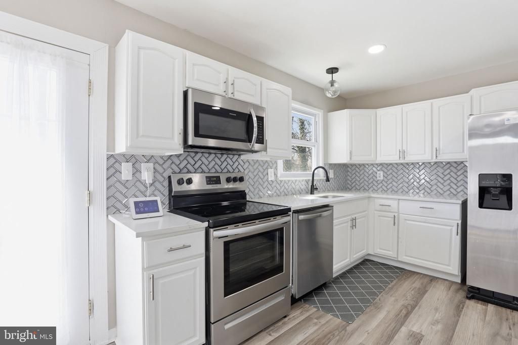 STUNNING, MOVE-IN READY SPLIT FOYER — FULLY RENOVATED IN 2022! Welcome home to this beautifully updated 4-bedroom, 2-bath detached home in the Carrington community of St. Charles. From the moment you enter, you’ll notice the thoughtful upgrades and elegant finishes throughout. The open main level features luxury vinyl tile flooring, recessed lighting, and a bright, modern kitchen designed for gathering. Enjoy crisp white cabinetry, quartz countertops, a large center island, and energy-efficient appliances — perfect for entertaining or everyday living. Both bathrooms feel spa-like, showcasing marble-style ceramic tile and eye-catching mosaic accents. The fully finished lower level offers additional living space with a bedroom and full bath, ideal for guests, a home office, or multi-generational living. Major upgrades include a full conversion from oil to electric, new HVAC (2025), LED lighting throughout for energy efficiency, and newer windows, roof, and siding. Step outside to a brand-new deck, perfect for grilling and relaxing. Situated on a spacious 0.26-acre lot with public water and sewer, this home offers comfort, style, and peace of mind — all just minutes from shopping, dining, and commuter routes.